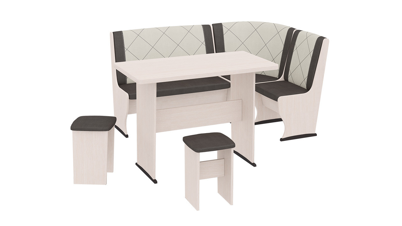 • Обеденная зона "Челси Т2" состоит из удобной угловой скамьи, практичного стола и компактных табуретов.