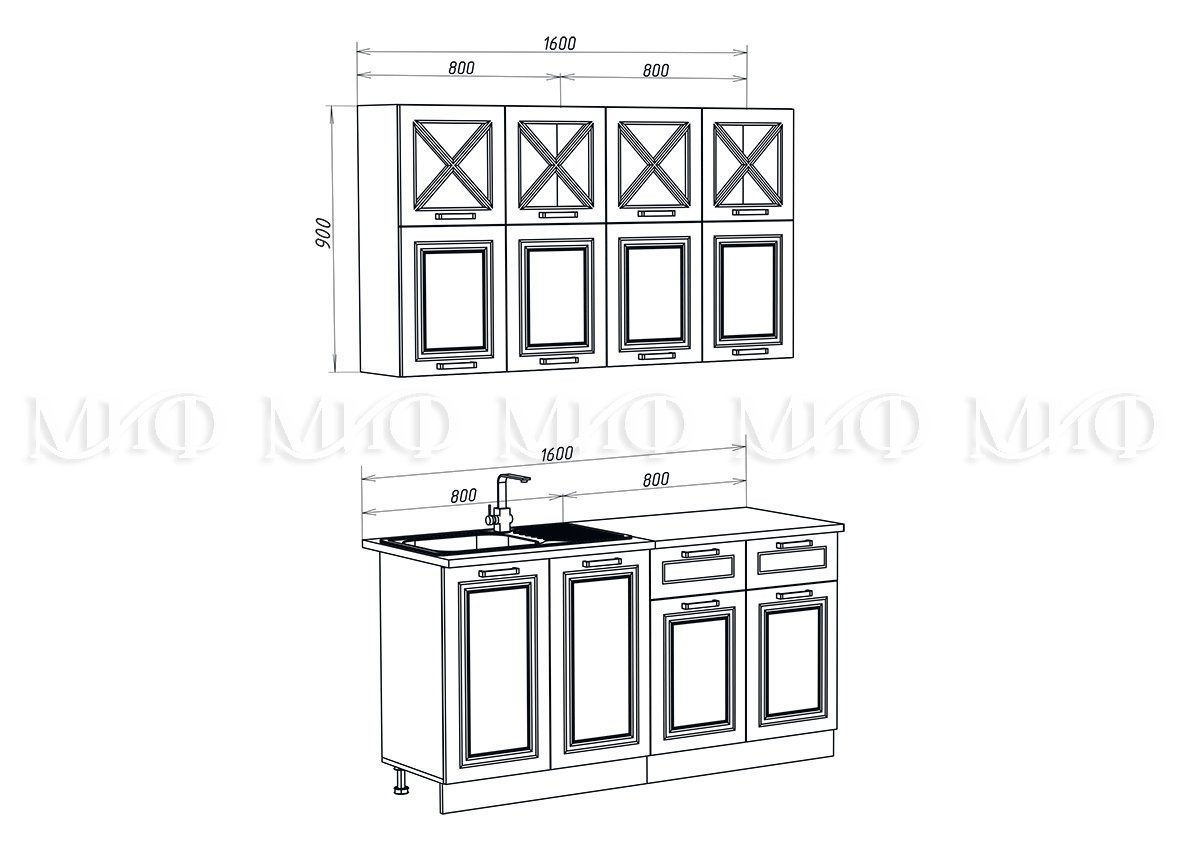 Кухонный Гарнитур Кармен New №4 МДФ 1600 мм (Высота верхних ящиков 900 мм)