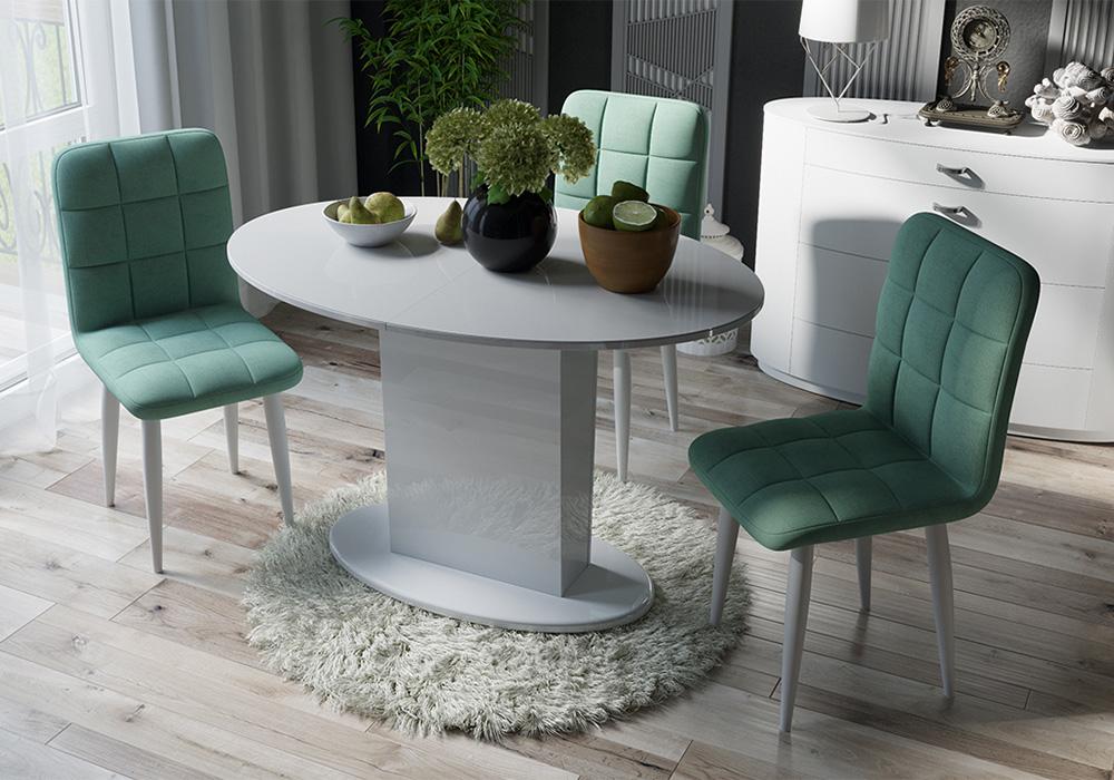 —Стул Франк конус белый матовый / микровелюр аквамарин
